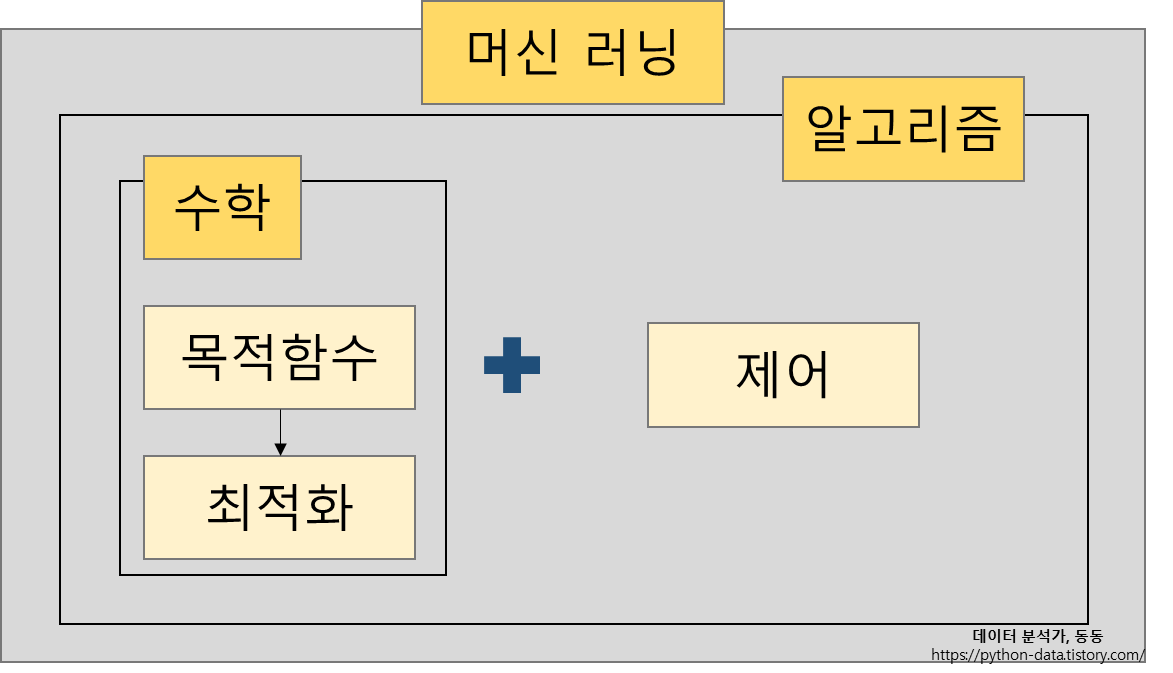 수학은 목적함수를 정의하고, 목적함수가 최저가 되는 점을 찾아주는 최적화 이론을 제공합니다. 최적화 이론에 규제, 모멘텀, 학습률, 멈춤조건과 같은 제어를 추가하여 알고리즘 만들어가는 것입니다. 우리는 이런 알고리즘에 적절한 값을 입력하고 설계하고 데이터 실험하는 역할을 하게 됩니다. 올해는 이 긴 흐름을 쭉 작성해보고자 합니다.