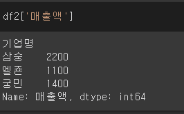 >> 	Index(['기업명', '매출액', '업종'], dtype='object')