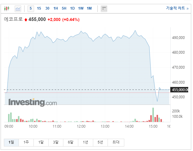 하지만 장 마감 1시간 전부터 급격하게 하락하게 시작하더니만.. 거의 시초와 동일하게 마무리했다.