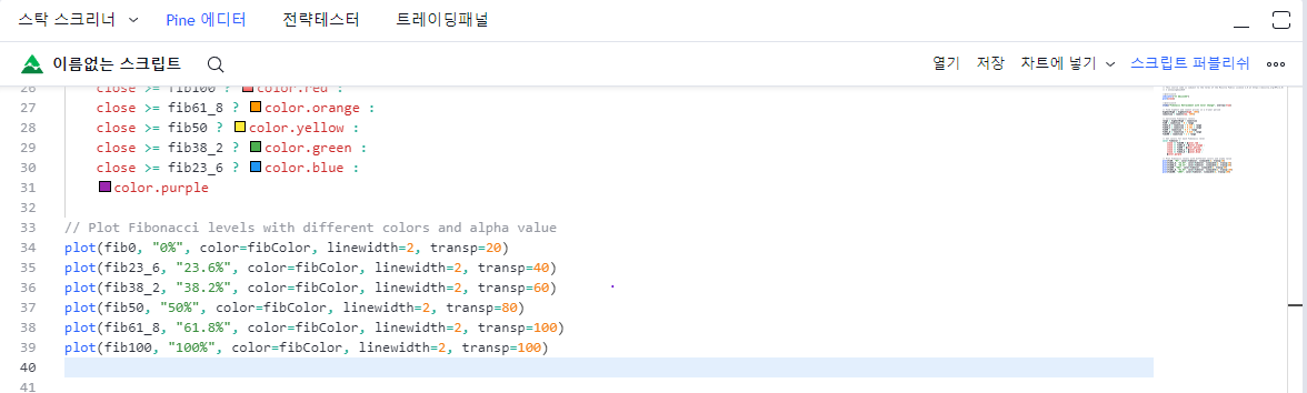 2-3. 트레이딩뷰 하단 pine 에디터에 코드를 복붙한다.