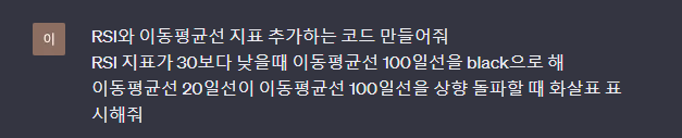- Rsi값이 30보다 낮을때 이동평균선(100일)을 검은색 라인으로 표시한다