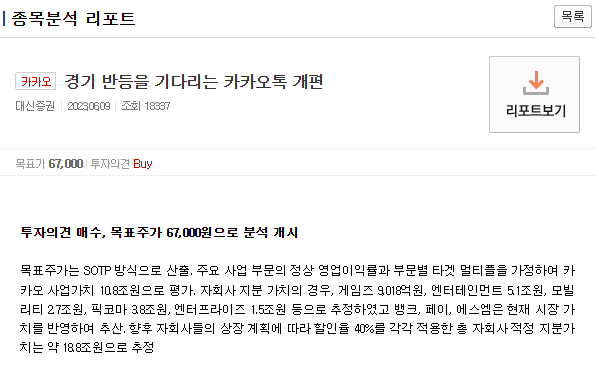 "광고, 엔터, 게임 모두 하반기 기대. 단, 주가 모멘텀은 부족하다는 판단" 이라는 코멘트가 있었다.