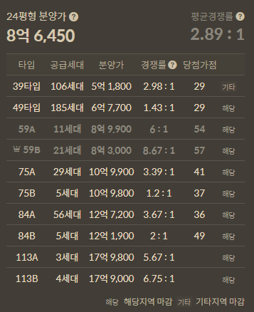 당해 거주자가 우선순위가 있다는 이점을 이용한 설계였는데.. 가격 예측은 실패했지만 결국 원하던대로 청약당첨까지 이뤄냈습니다.