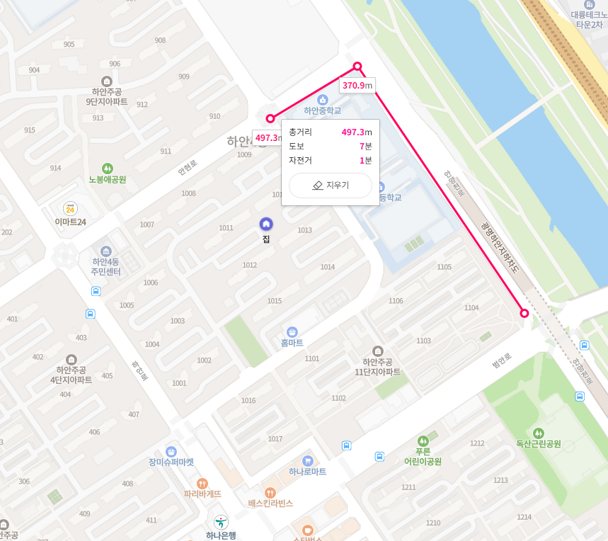 하안동을 한마디로 표현하면, 조금 오래됐지만 택지지구로 조성되어 인프라 환경이 매우 좋다. 특히 가산디지털단지 출근하시는 분들에겐 아주 단지라고 할 수 있다. 특히나 안양천에서 운동하고 산책했던 추억들은 정말 소중했다.