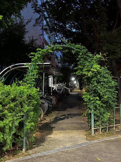 상가 맞은편은 1009동으로 가는 뒷길이 나온다. 나무가 울창하게 있고 단지는 오래됐지만 편안하고 안정감이 느껴진다. 최근에 재건축 설명회도 진행했다.