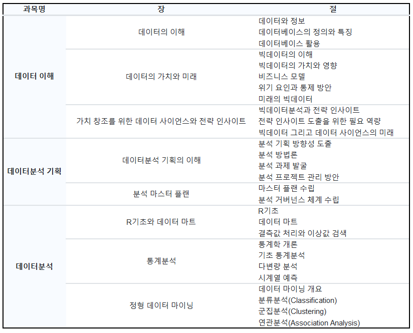 ㅇ 데이터베이스론 + 통계학 + R(기초) 를 배울 수 있습니다.